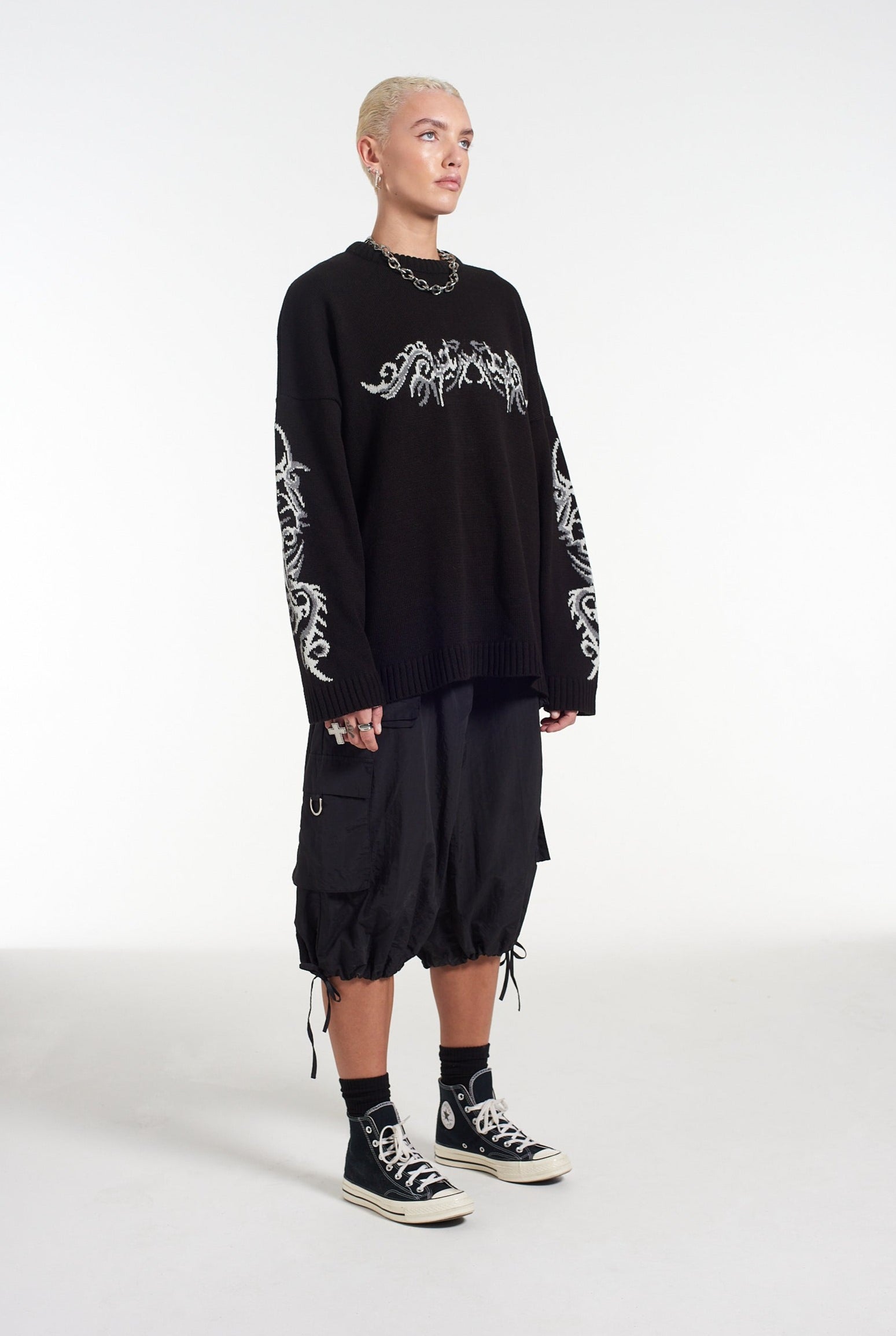 Shop women's and men's knitwear online at The Ragged Priest. Oversized jumpers, statement knits, and dresses designed with a grunge edge. Layer up with unique knits made for statement styling. Taking inspiration from the archives, browse classic styles including oversized knitwear, chunky knits, logo knits, logo jumpers, cardigans and stripe jumpers.