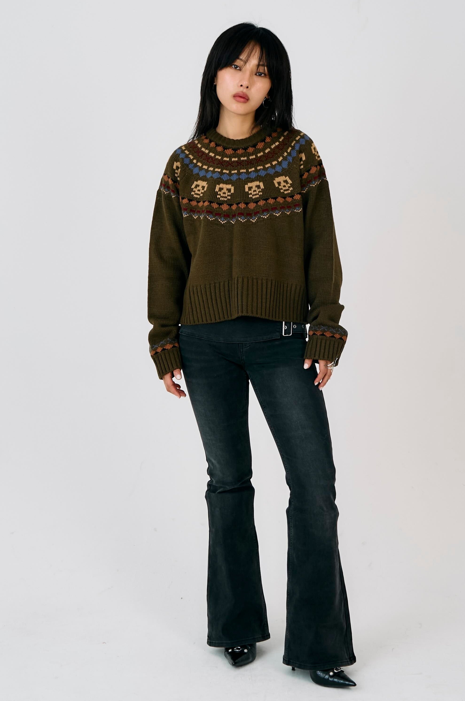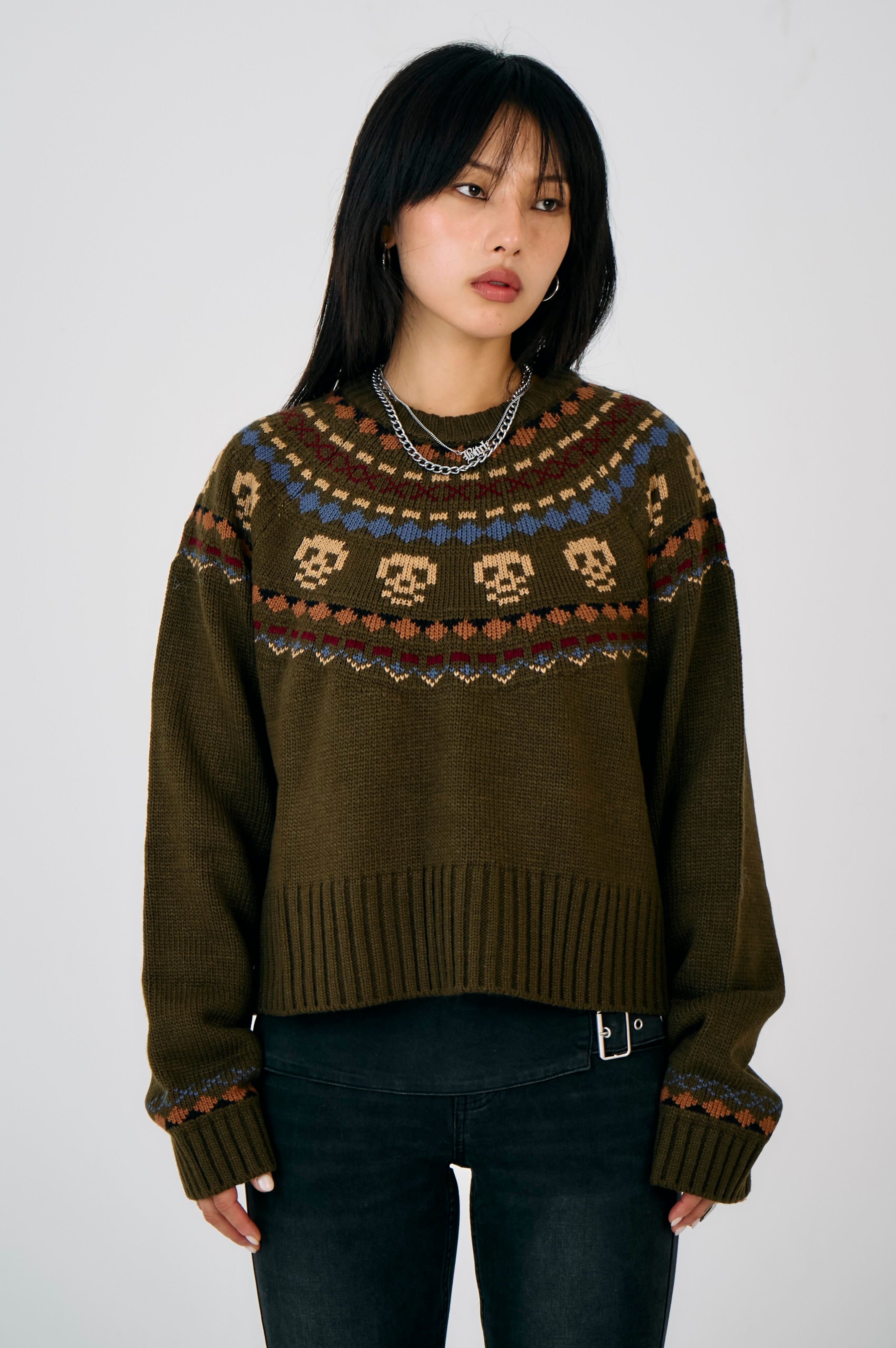 - Khaki knit with skull fair isle pattern