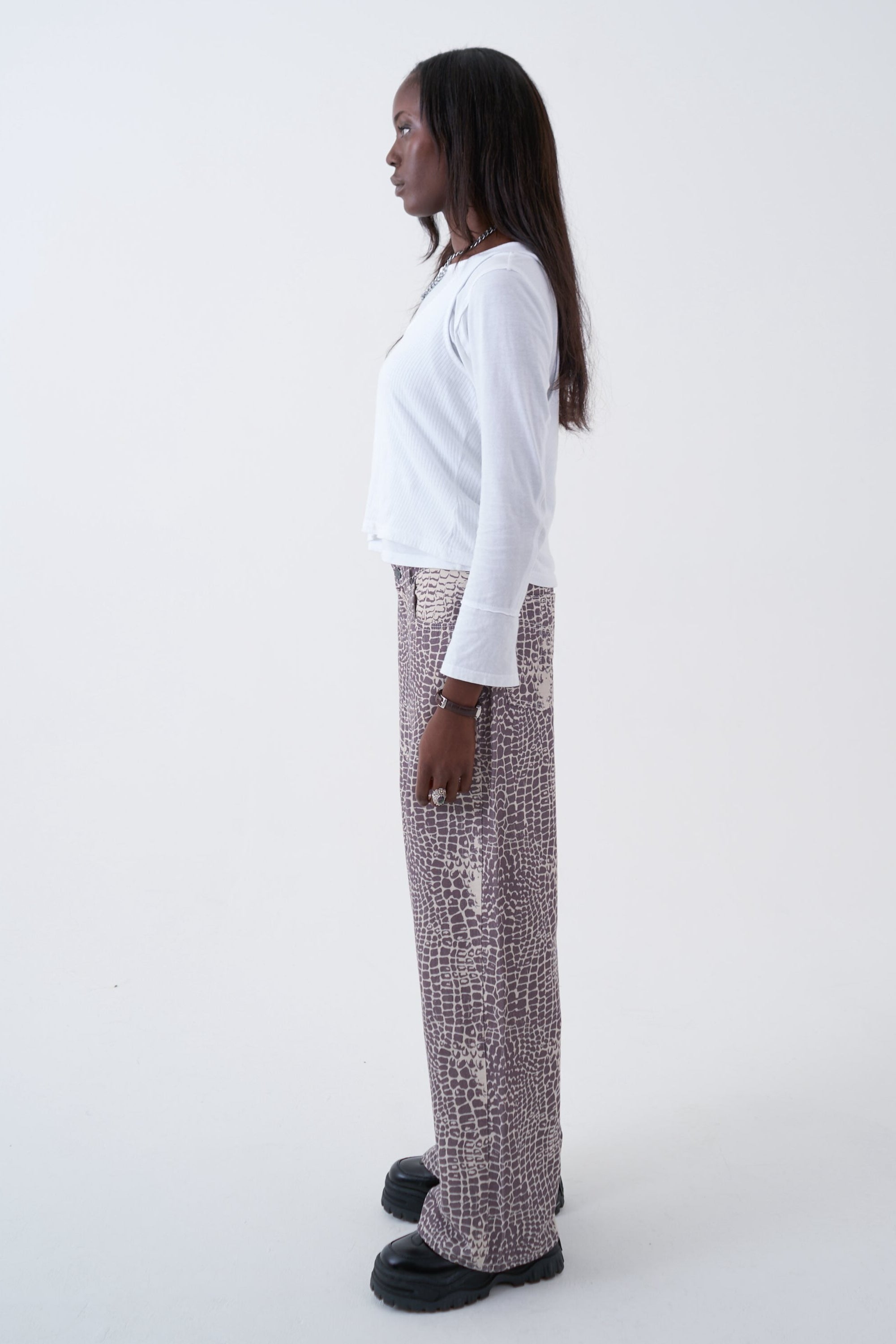 Our iconic Release Jean - ultra baggy, slouchy wide leg in a brown and ecru crocodile print