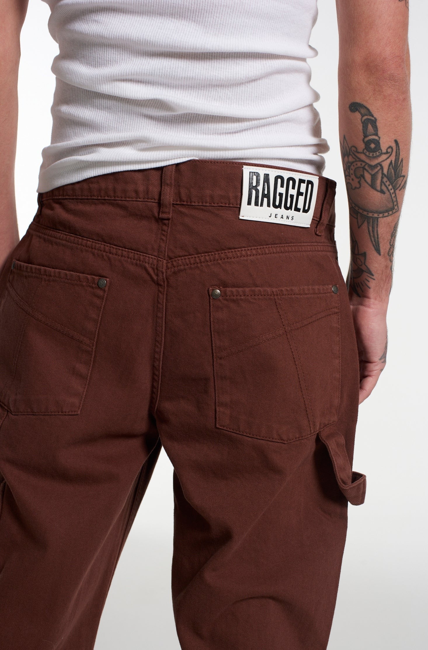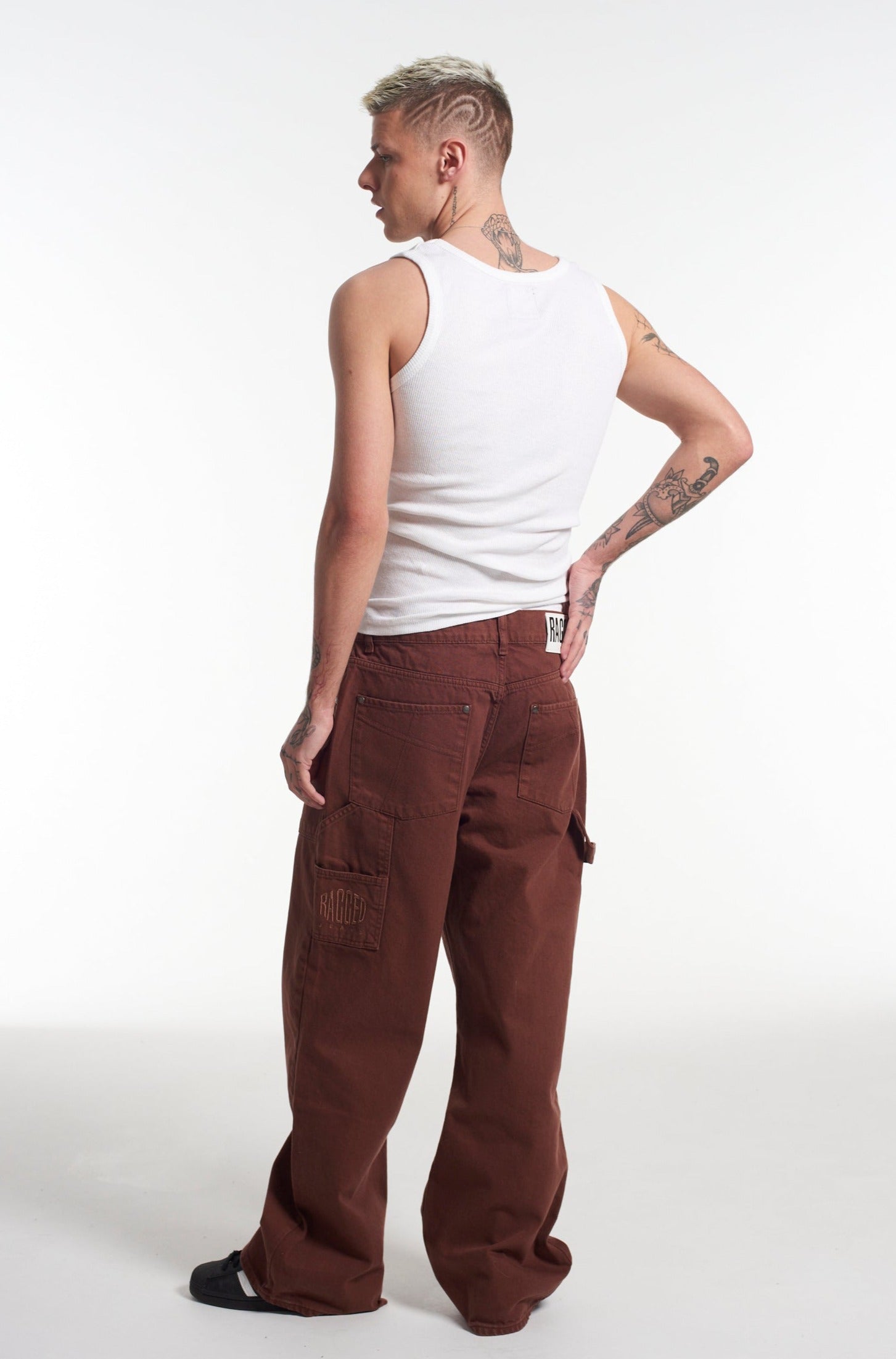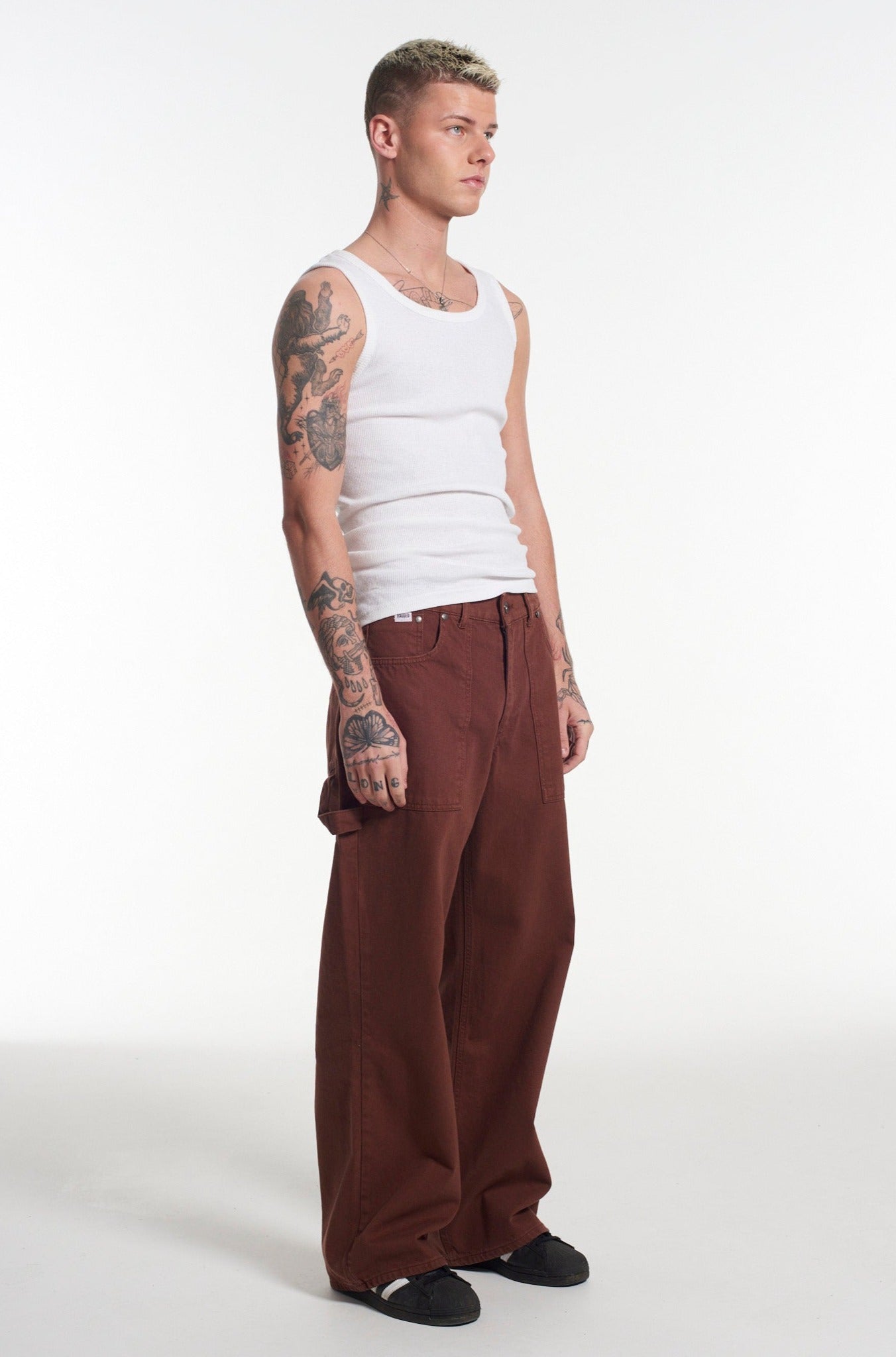 The Ragged Priest brown denim wide leg baggy jean with utility strap detail.