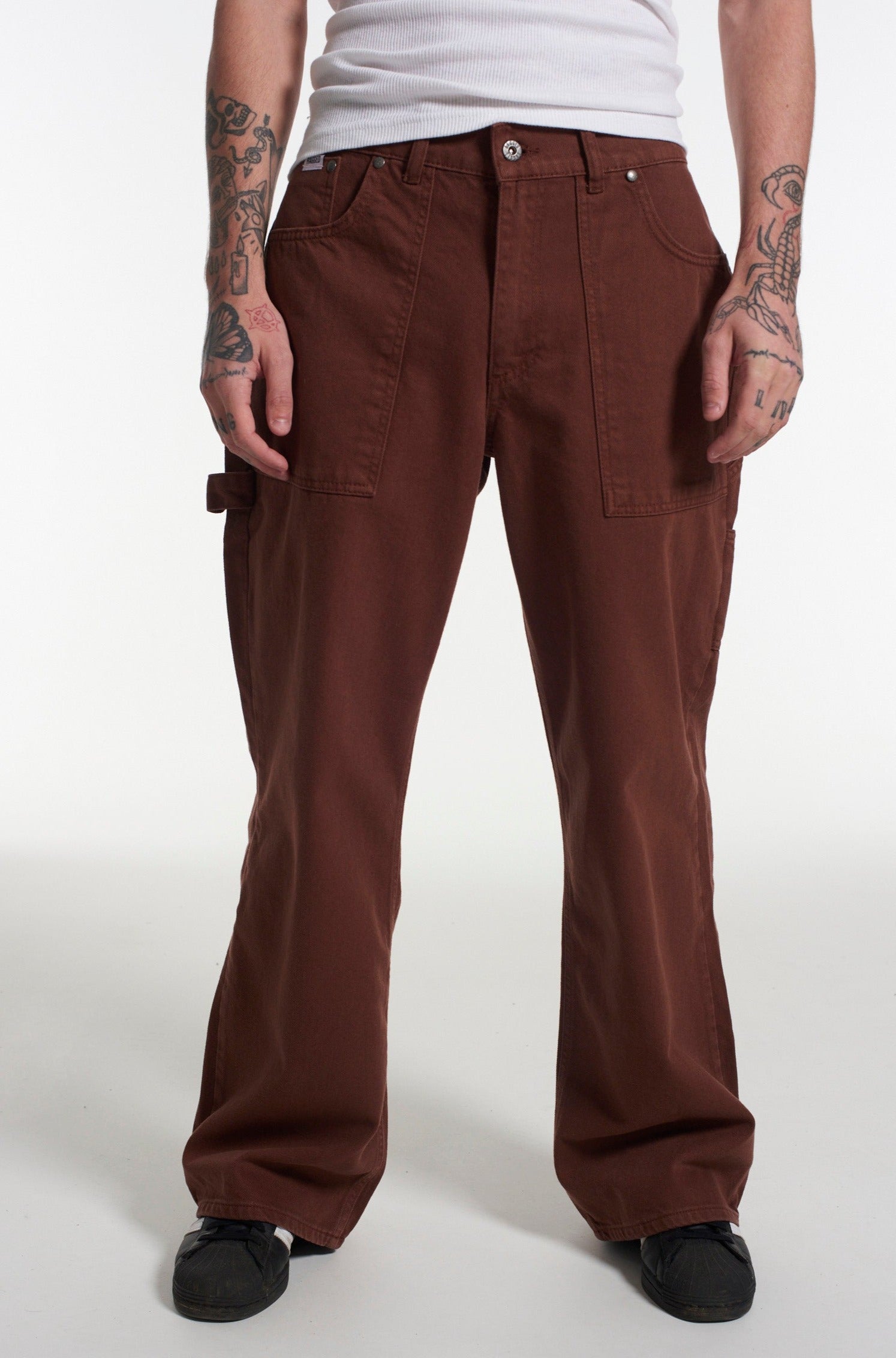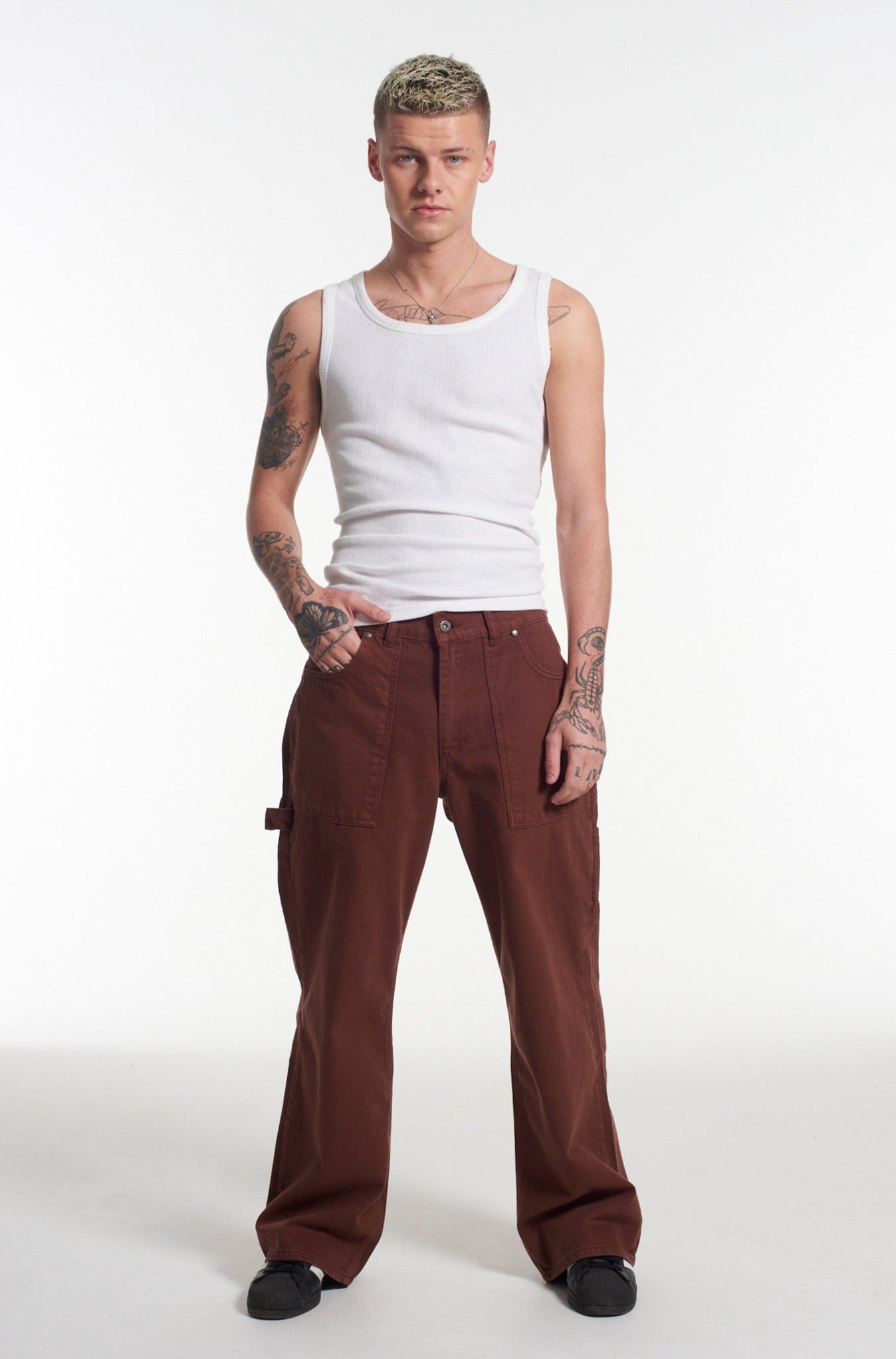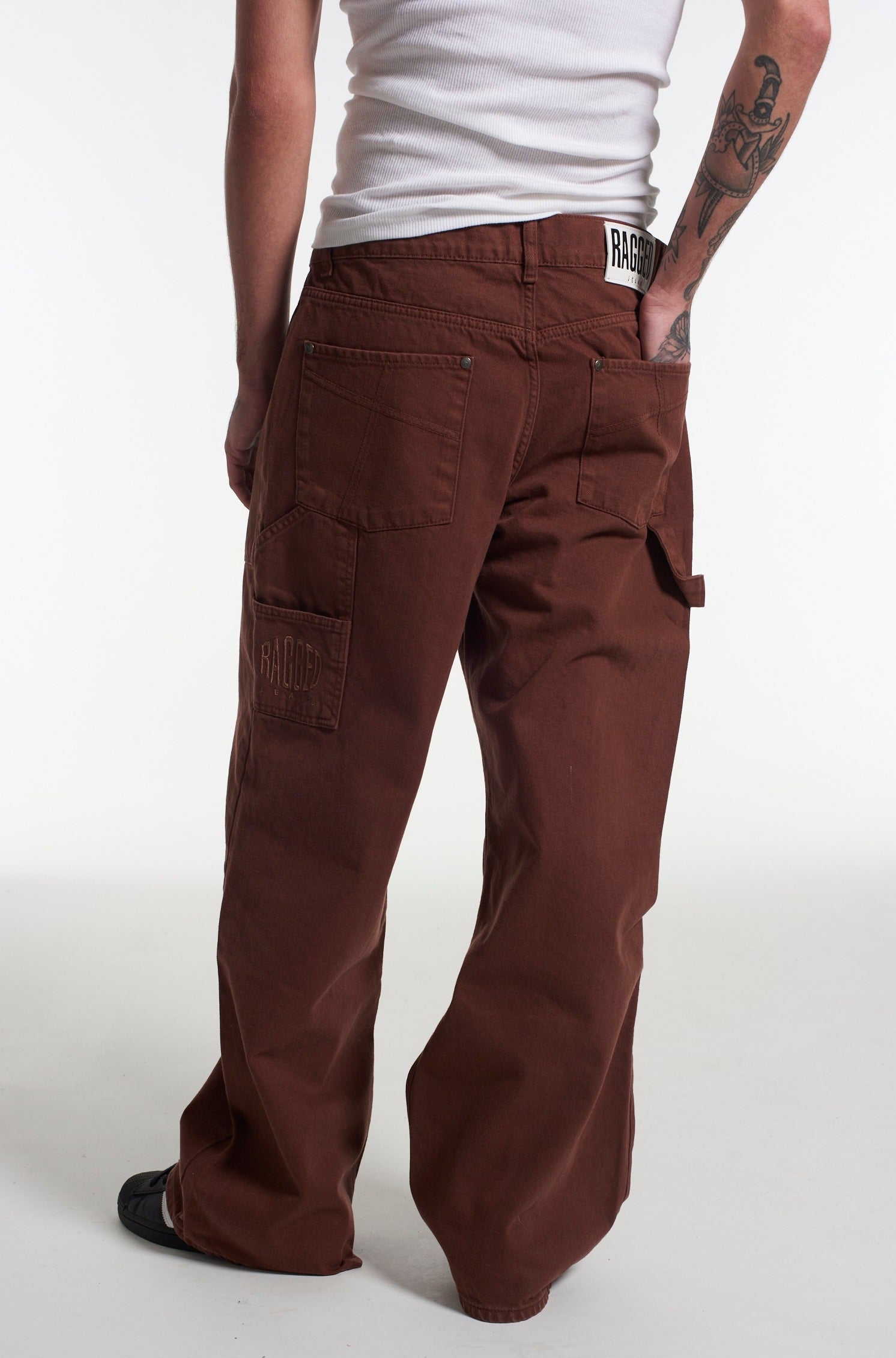 The Ragged Priest brown denim wide leg baggy jean with utility strap detail.