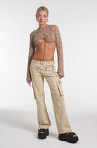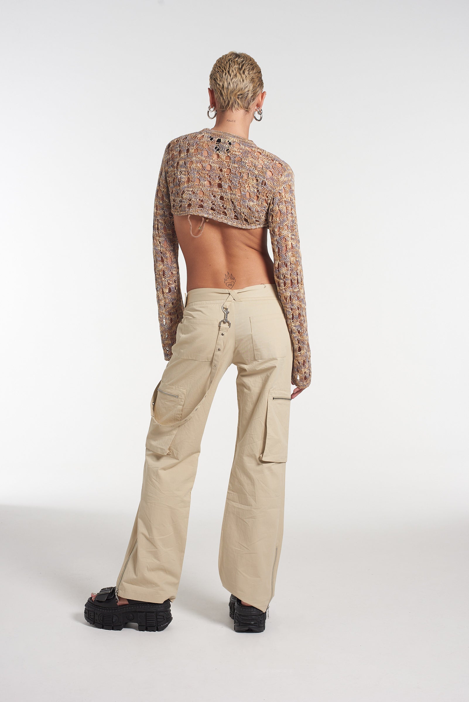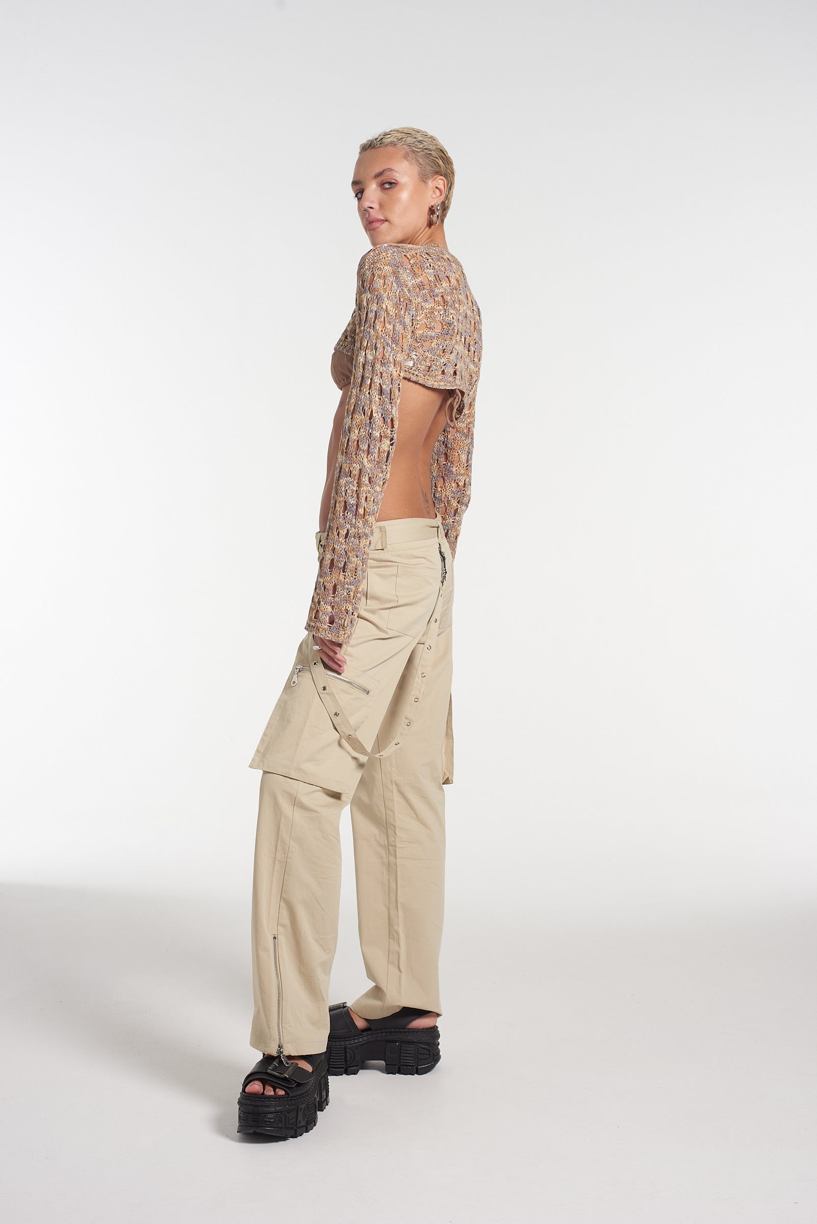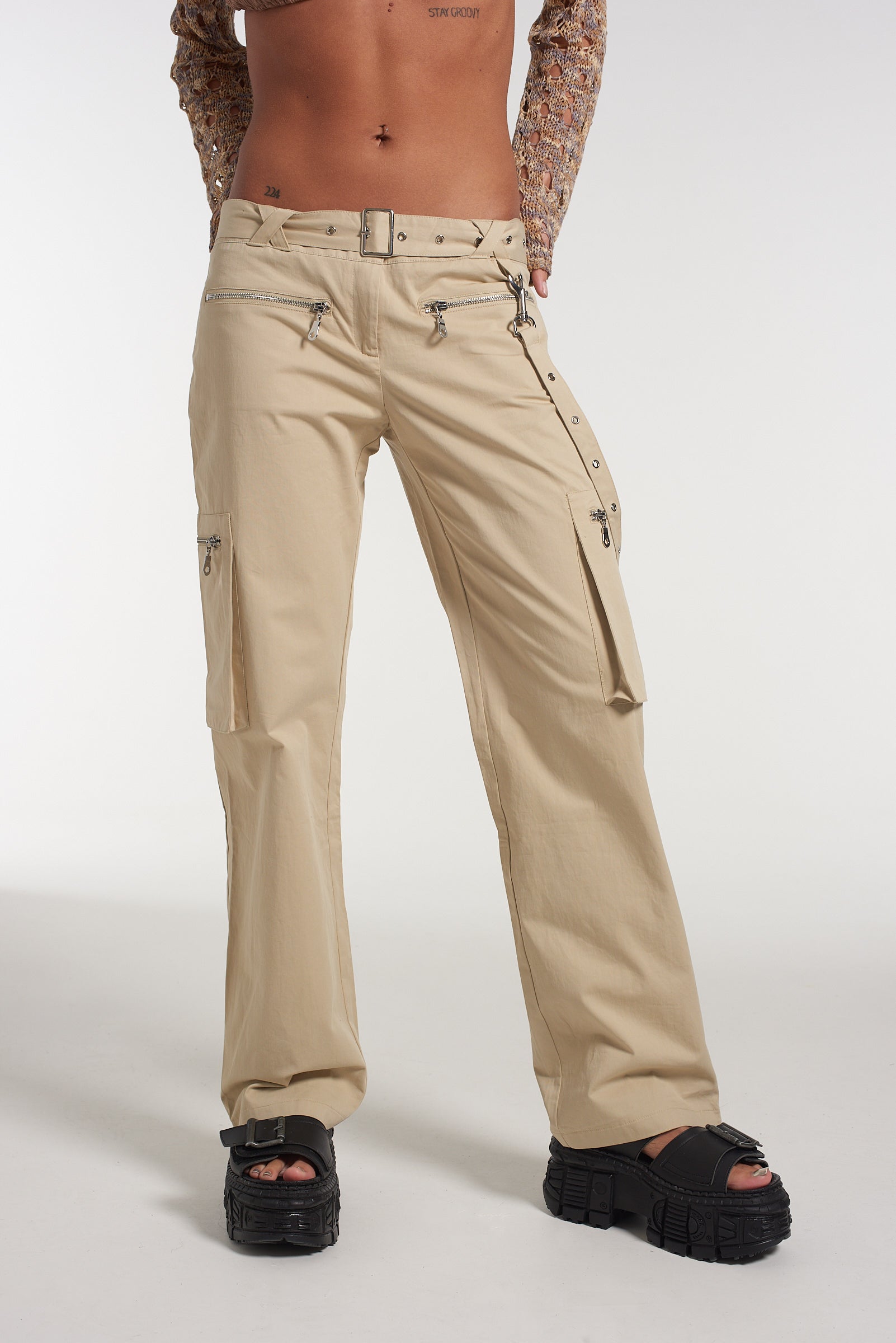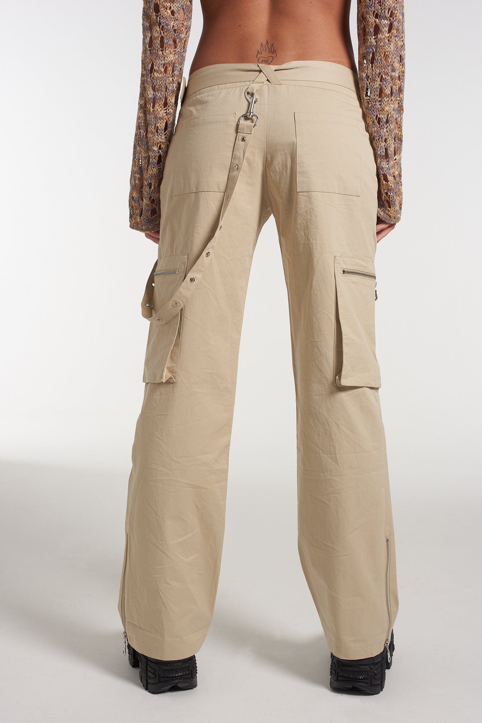 The Ragged Priest stone drill cotton straight leg pant with detachable harness strap.