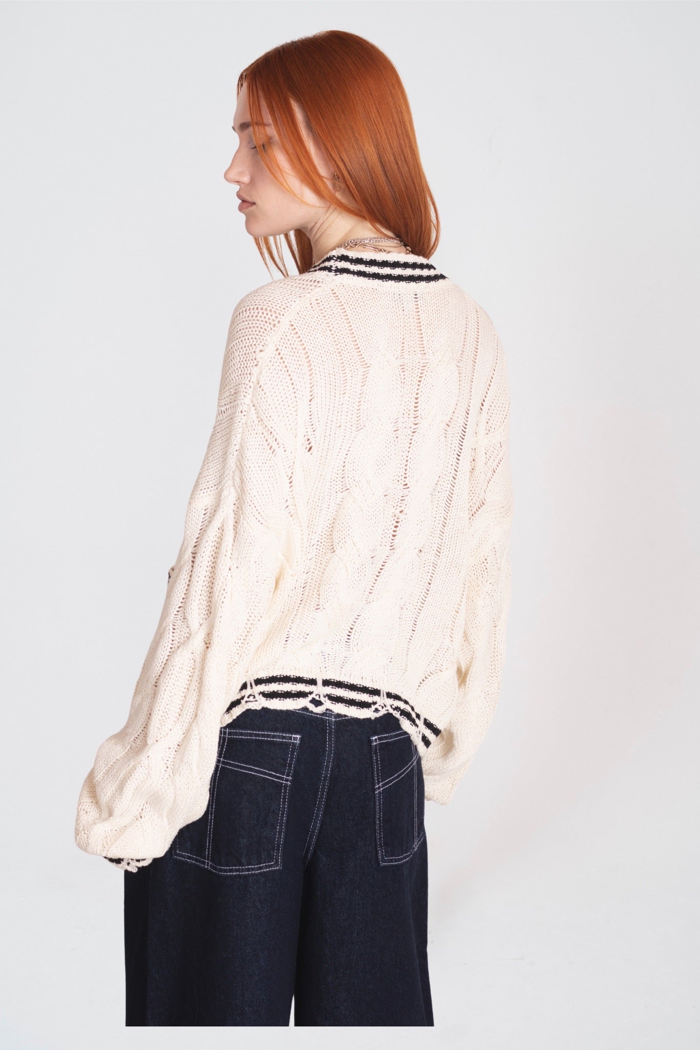 - Ecru acid wash cable knit