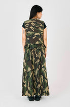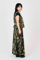 Camo print vest with silver hardware buckle fastening in a slightly cropped relaxed fit. Utility meets playful - wear with our matching Squad Skirt for a bold look.