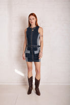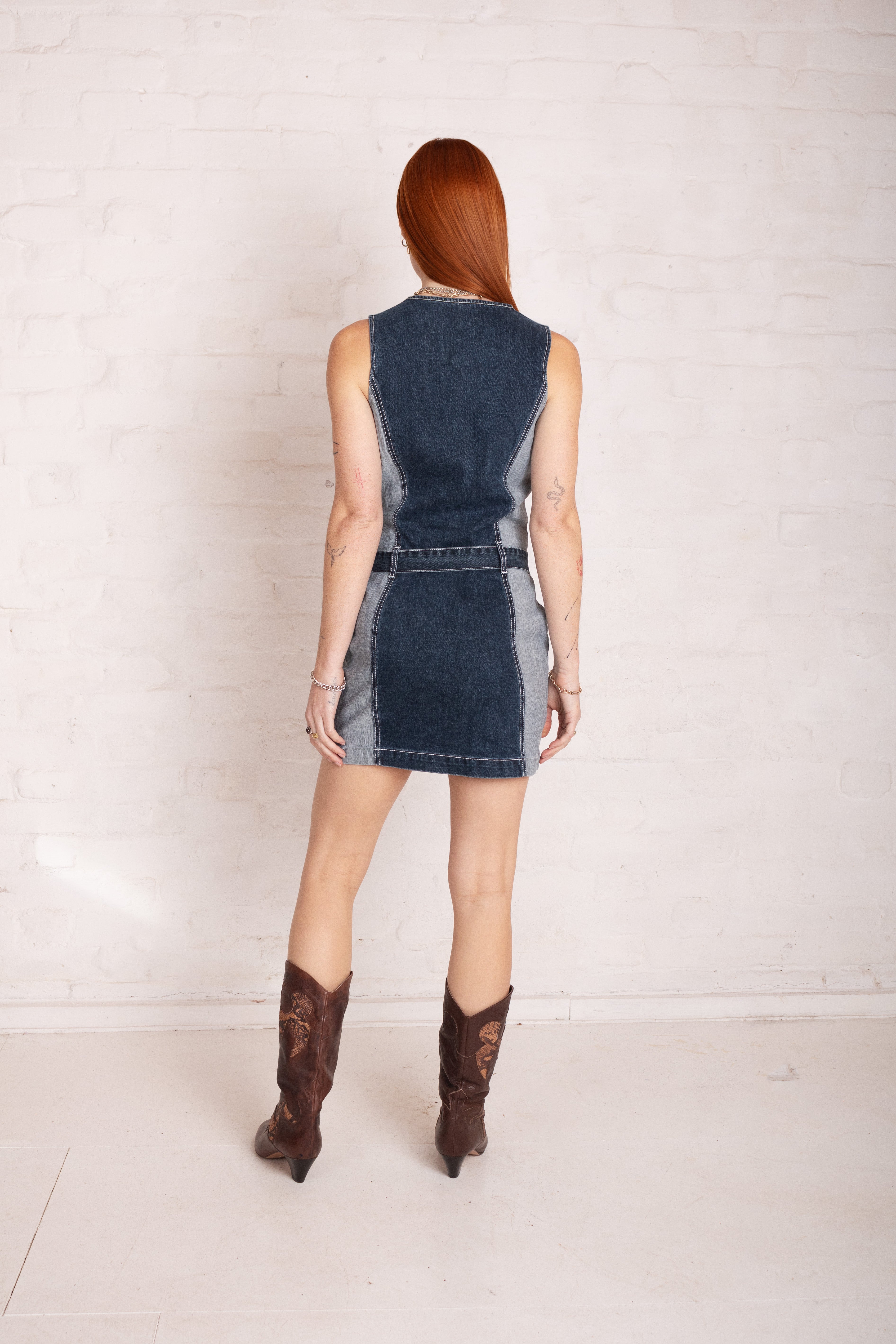 Hose Patchwork Denim Mini Dress