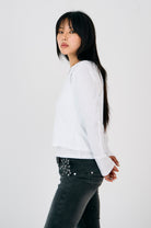 White long sleeve t-shirt with a layered rib vest. A minimal staple with an edge.
