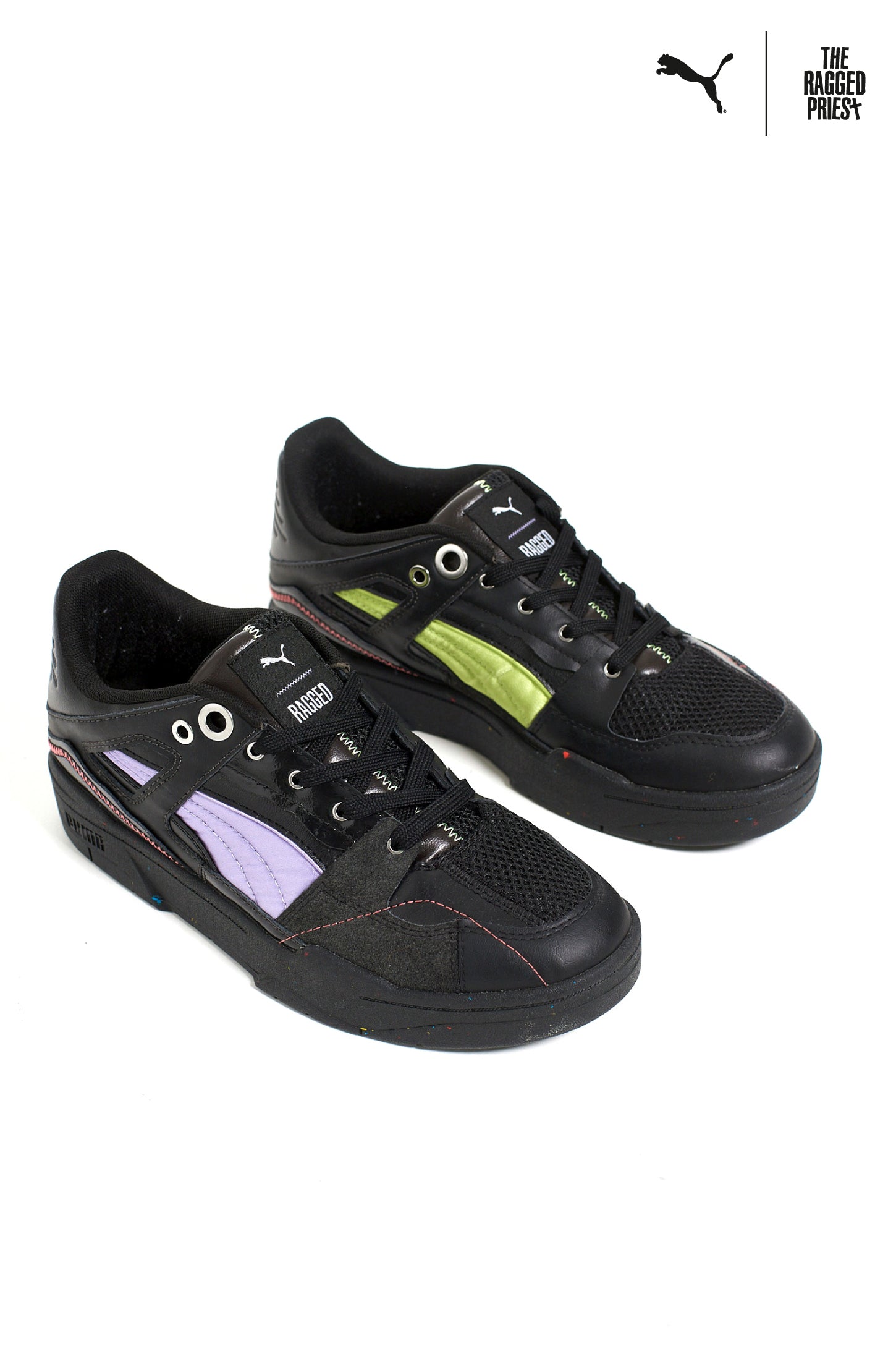PUMA x The Ragged Priest black and pastel Slipstream trainer. Limited edition, exclusive trainer style for streetwear fans and sneaker heads.