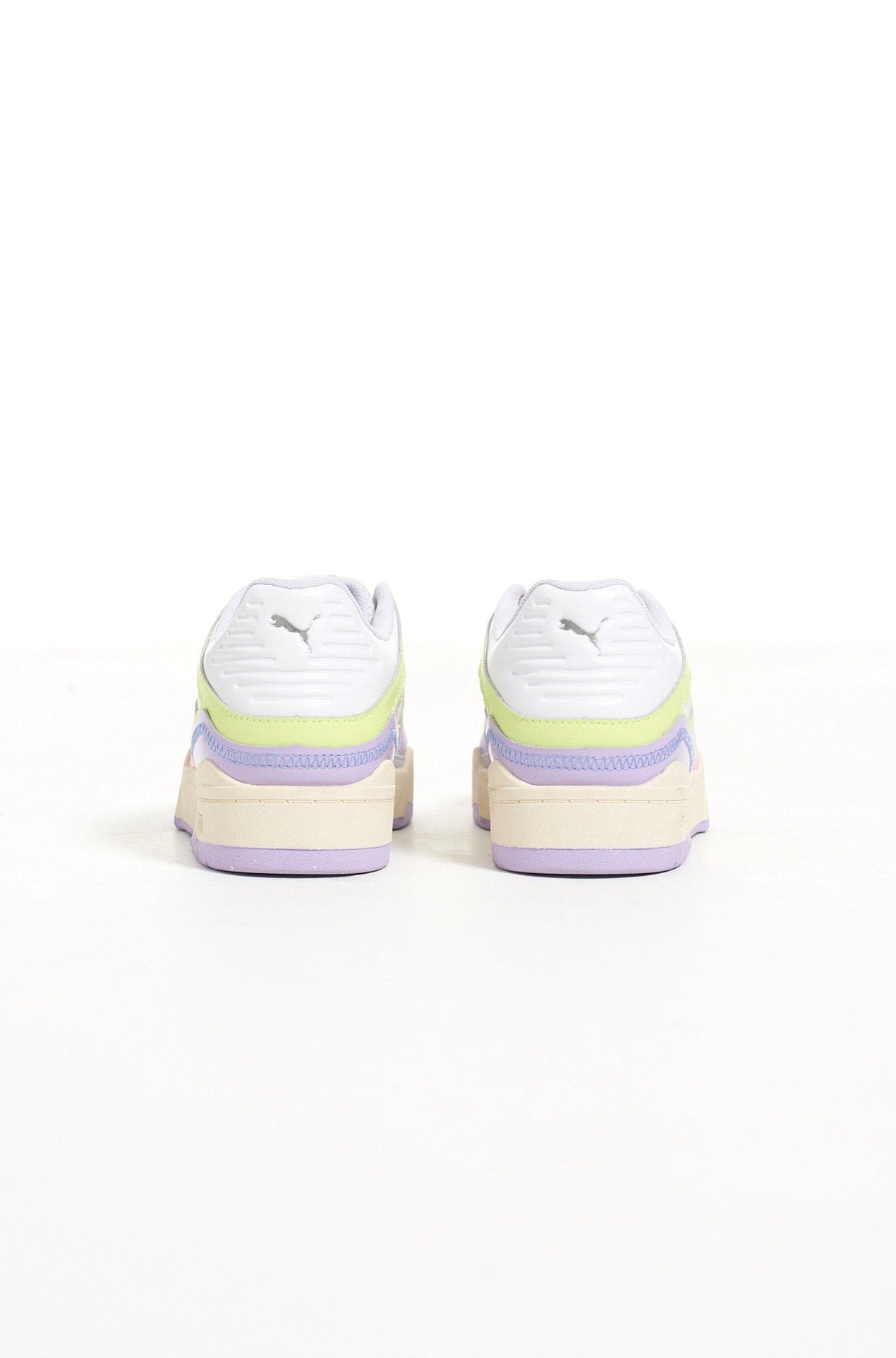 PUMA x The Ragged Priest white and pastel Slipstream trainer. Limited edition, exclusive trainer style for streetwear fans and sneaker heads.