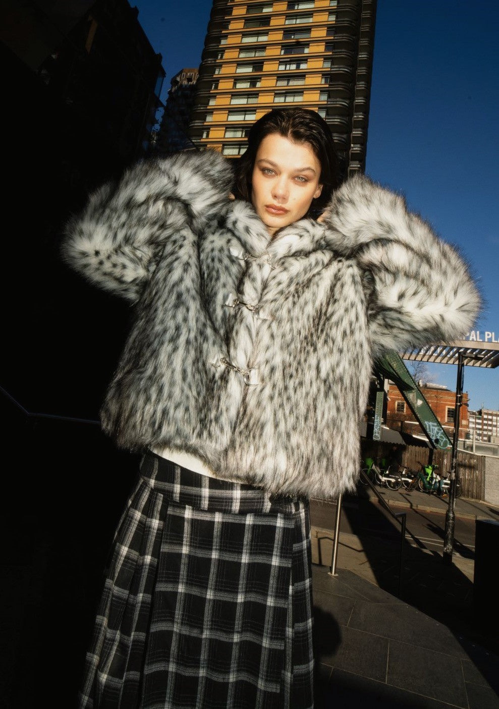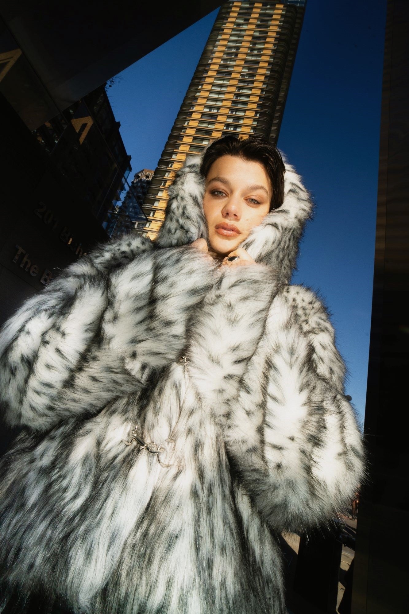The ONLY coat you need this Winter. White & grey "arctic fox" super shaggy faux fur coat with hood with silver hardware clasps