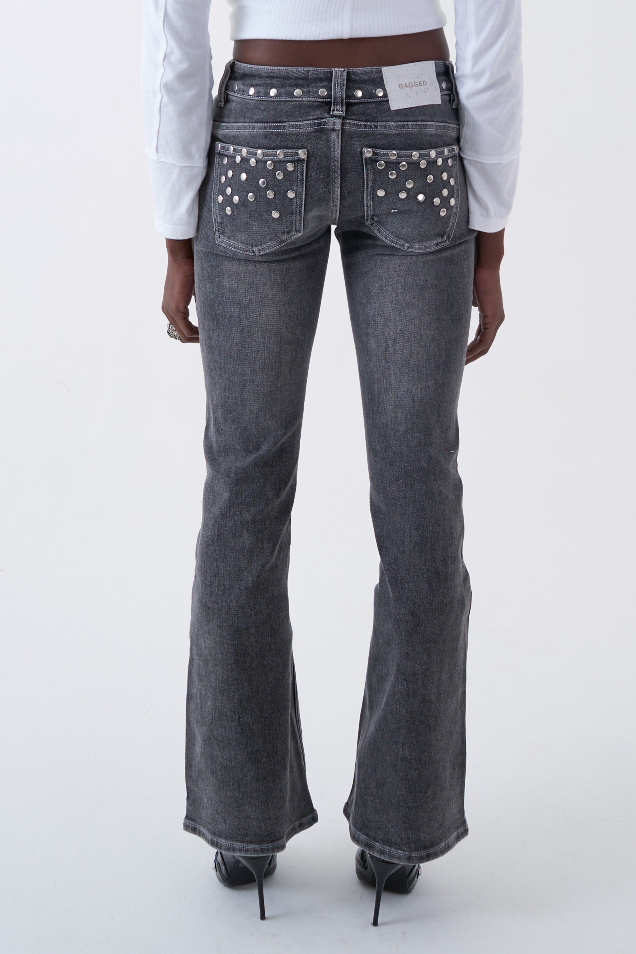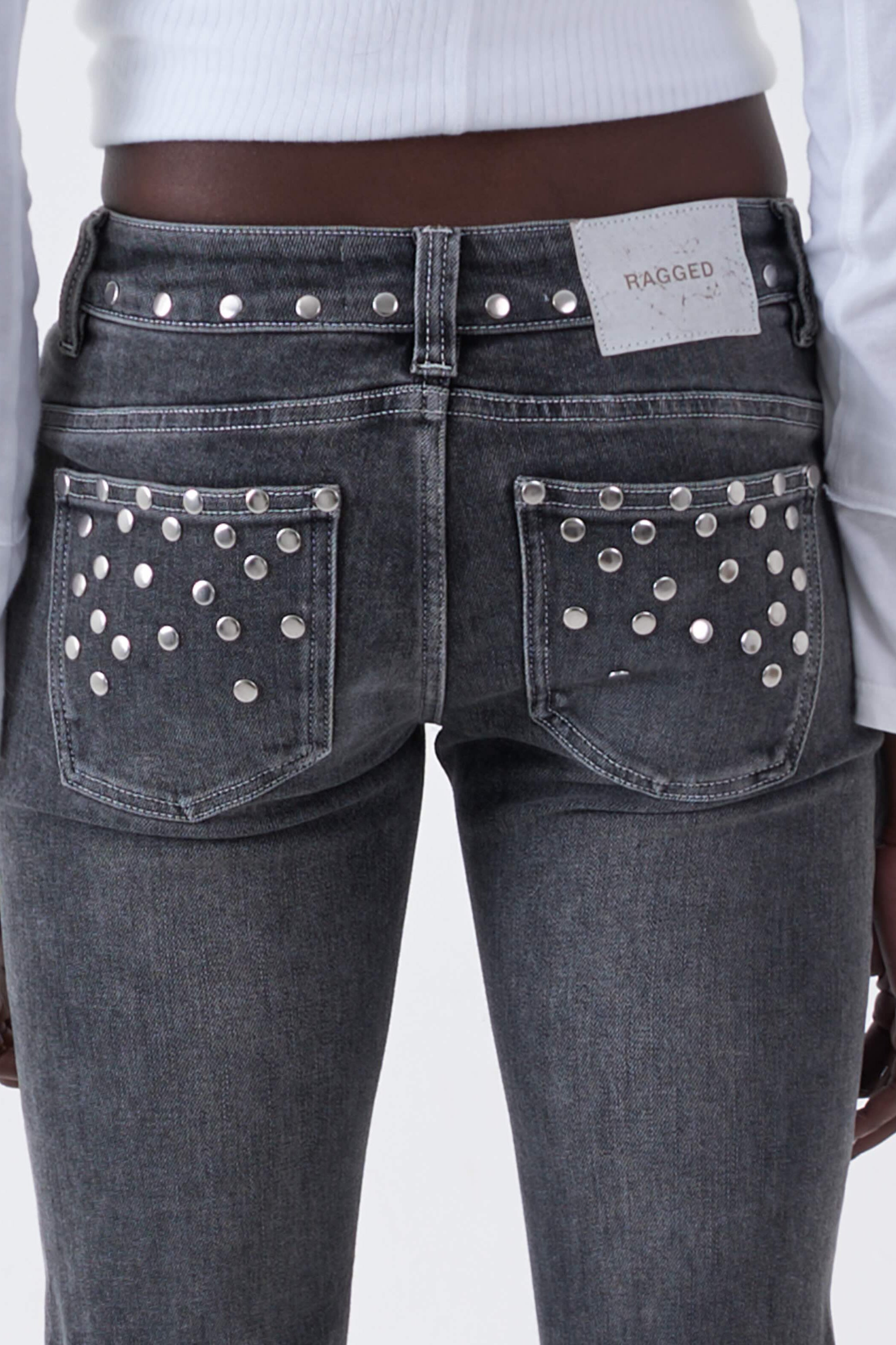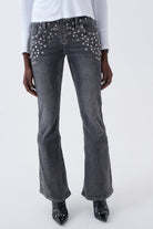 Locket Grey Studded Bootcut Flare Jeans