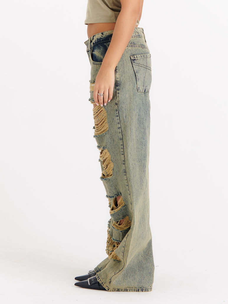 The Ragged Priest signature Release Jean fit in our dirty wash denim with all over shredded detail